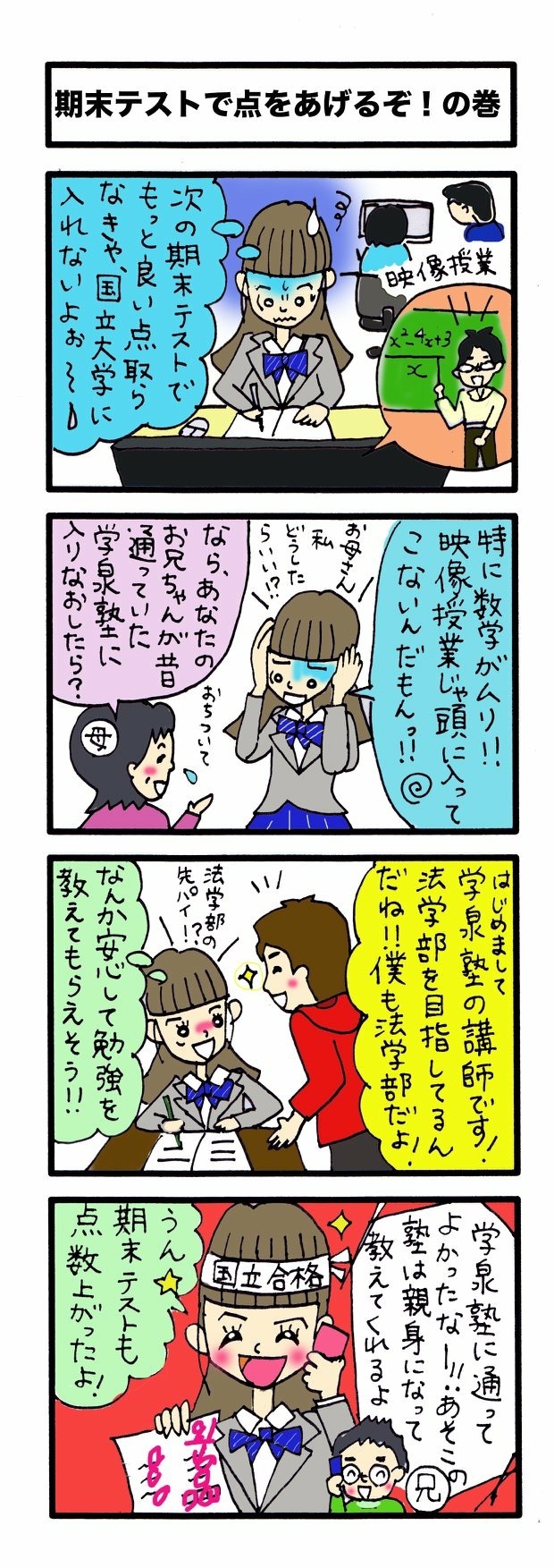 また、これまでの失敗経験からのアドバイスや克服法だけでなく、 新しい情報やテスト対策など実践的な話をリアルタイムで聞くこと ができるというのも、学生ならではのメリットだと考えます。